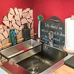 Et udstyret køkken er ideelt til tilberedning af hjemmelavede retter.